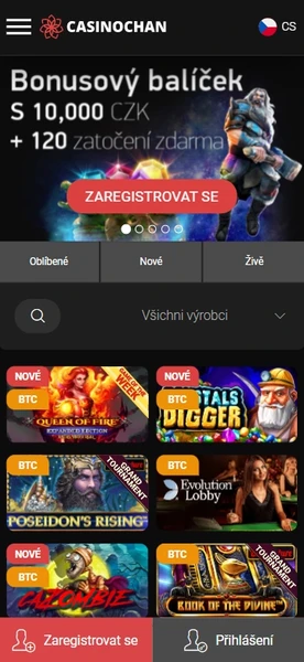 Bonusy Casinochan – 100% do 10 000 Kč a 120 extra zatočení